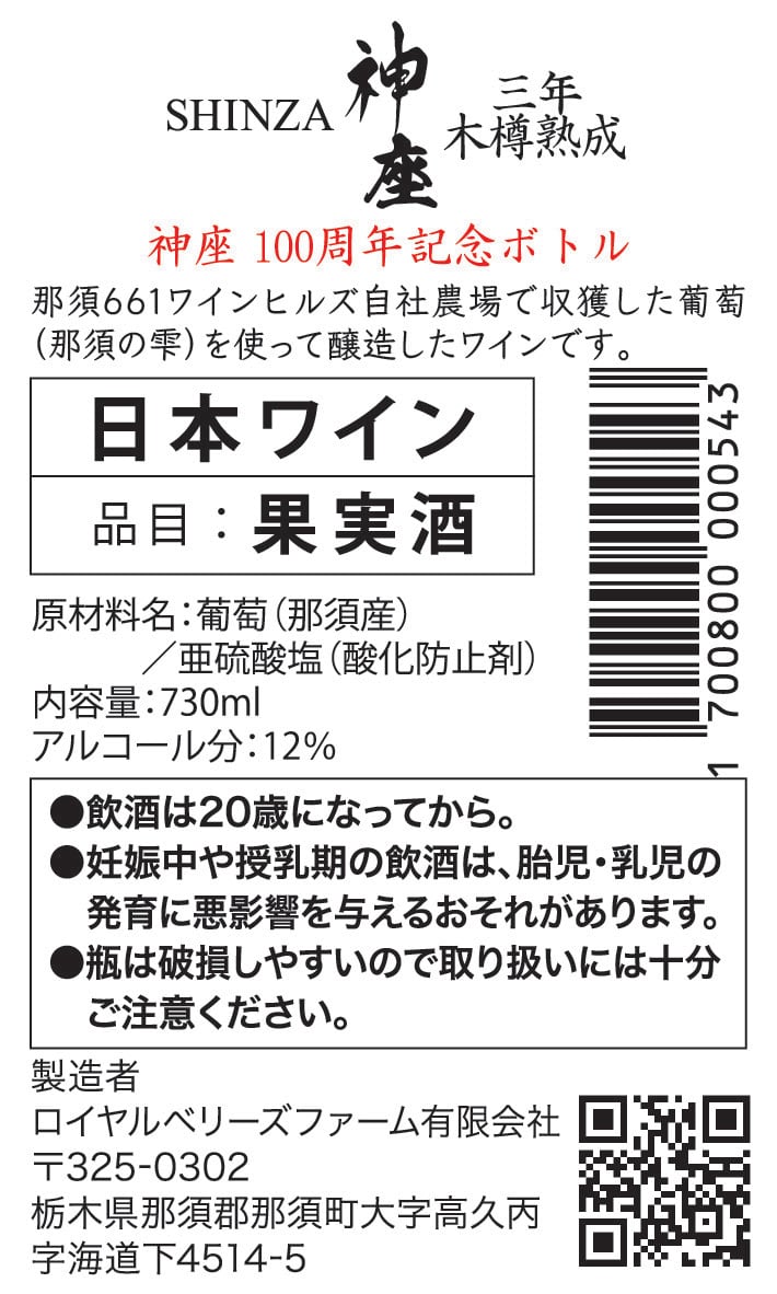 創業100周年にあたって「神座100周年ボトル」が数量限定で新入荷しました。