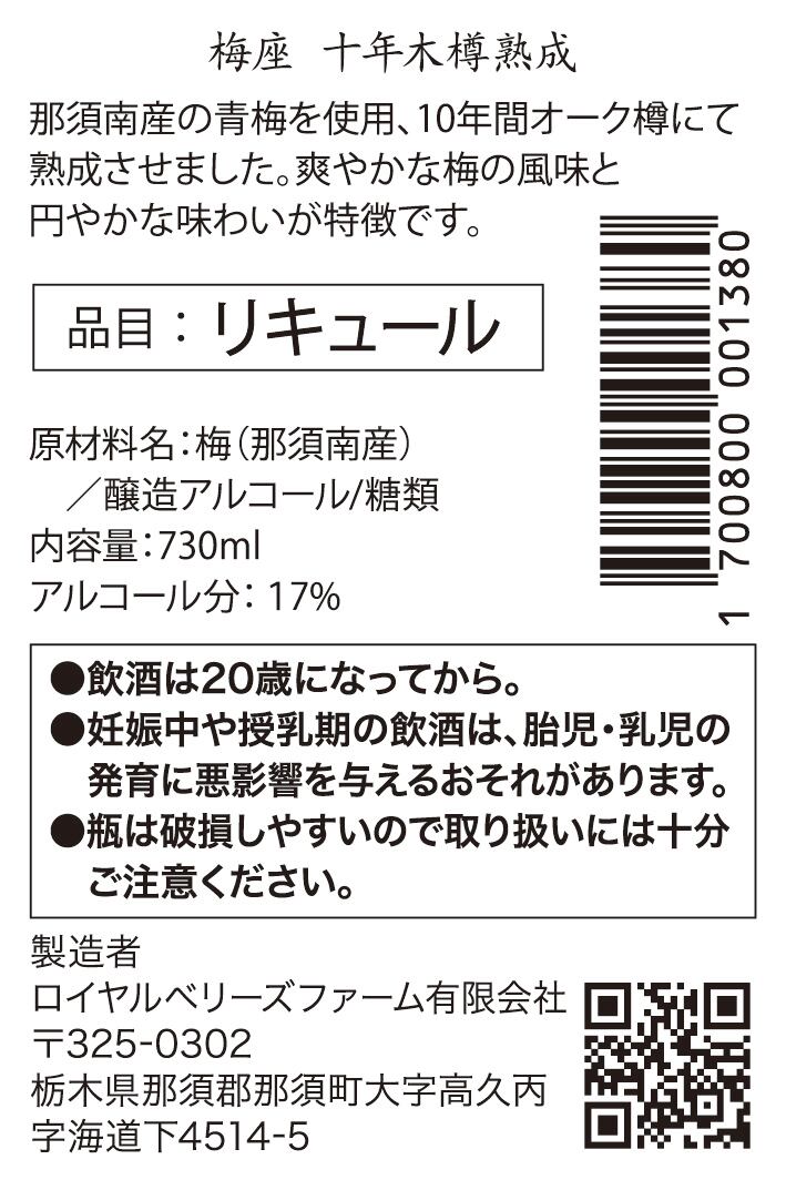 2015年産の梅酒をオーク樽で10年長期熟成させた大人気オーク樽熟成リキュールが数量限定で新入荷しました。