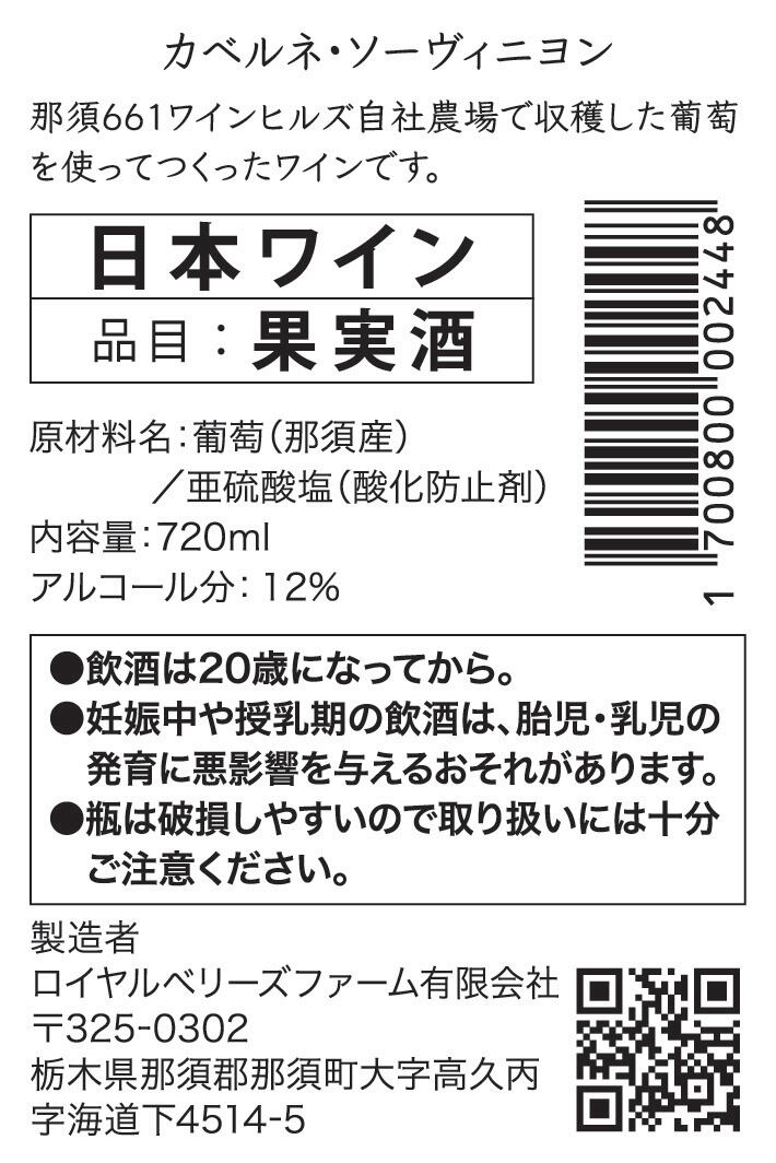 自社農場産カベルネソービニヨン100%使用、赤ワインの王様とも言われ、